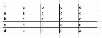 Vad tror du om det här? Tänk att det finns en operation * med följande kompositionstabell