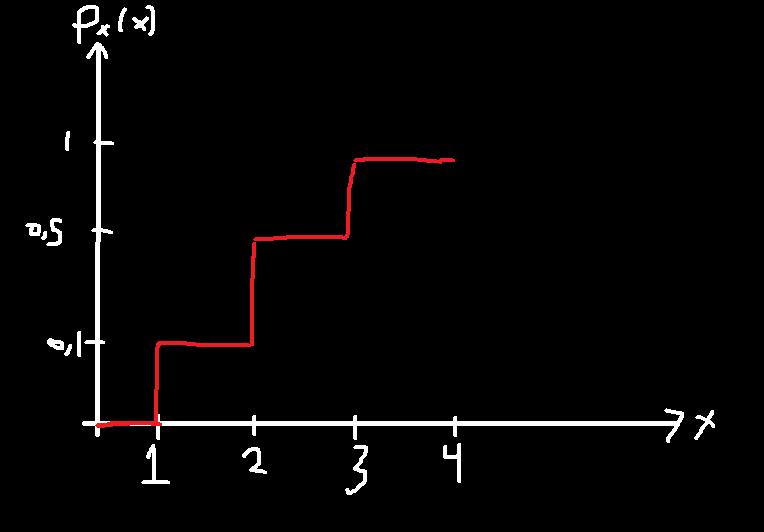 Förstår du varför? Du ska rita grafen till fördelningsfunktionen, alltså får du för varje beräkna sannolikheten att . kan alltså inte vara avtagande (som du verkar ha fått det till vid ). Nu var det också aningen överflödigt att beräkna för eftersom vi redan hade beräknat , och är icke-avtagande och begränsad uppåt av . När du ska rita grafen var också tydlig med värdena på i punkterna där funktionen inte är kontinuerlig.