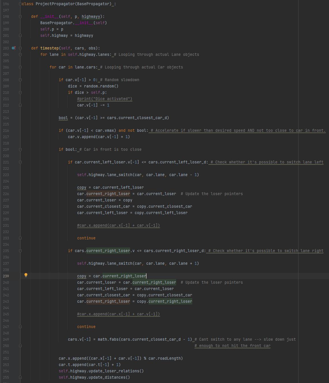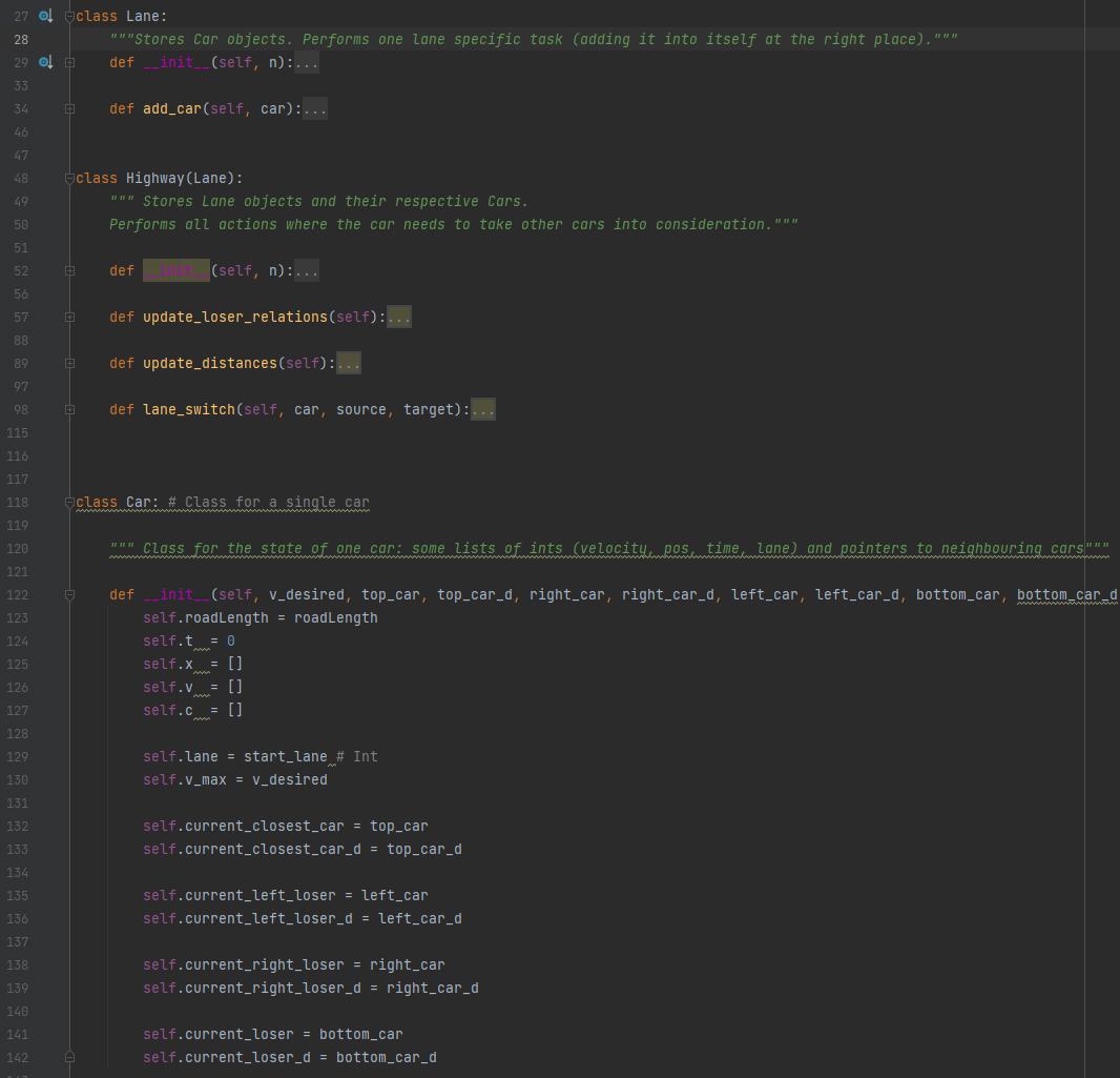 jag skriver ett program som simulerar bilar på en motorväg. Vid varje tidssteg itererar den fram varje bils nya position baserat på dess nuvarande hastighet men kör innan dessa grejer: