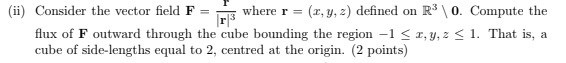 (Jag har redan sagt att divergensen är 0 överallt, utom i origo, men det bör du bekräfta, jag kan ju hitta på.)