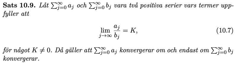 Nyckeln till satsens formulering ligger i att när K varken är noll eller oändligheten så kan vi säga Summa an konvergerar < = > Summa bn konvergerar