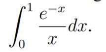 jag fick lära mig att lösa den första genom att bryta ut e^-x då den inte är noll eller oändlig i angivet intervall vilket medförde att hela integralen var divergent då 1/x är divergent i angivet intervall