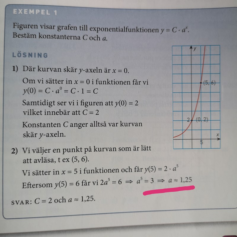 Min fråga är just hur man räknat ut att om a^5=3 så är a ungefär =1.25. Det stämmer, 1.25^5 är ca 3, men hur räknar man ut det "baklänges" så att säga?