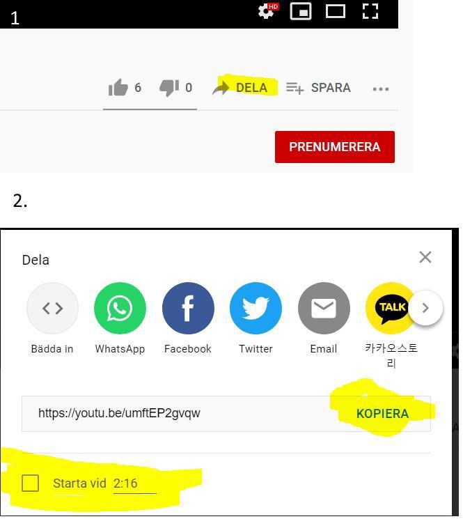 Eller så kan du länka till youtubevideon med en tidsstämpel. Detta kan du göra direkt i gränssnittet
