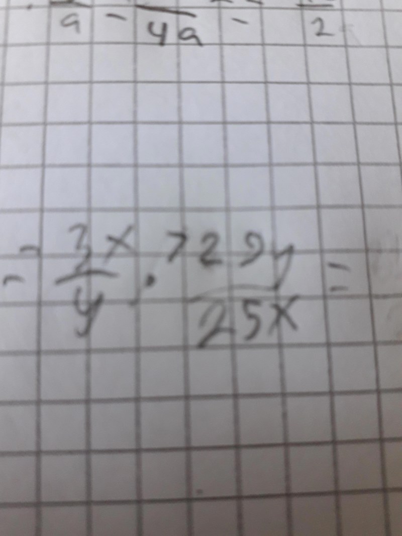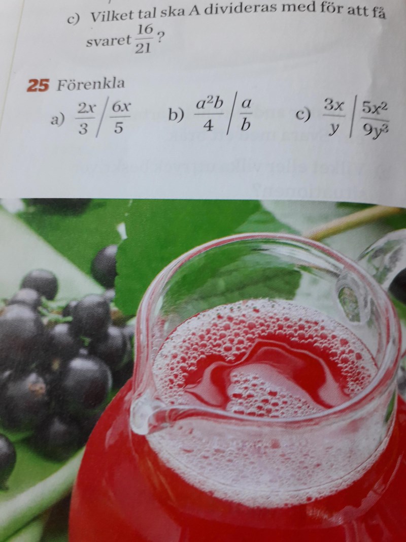 Det är c) jag har lite svårt för. Jag följer allting och multiplicerar och får fram det här. Det ska tydligen bli 27y upphöjt till 2 delat på 5x. Kan ni hjälpa mig?