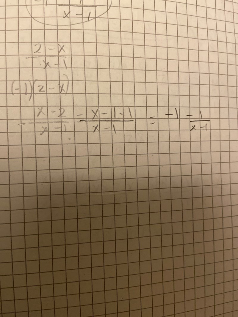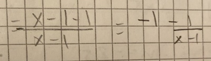 vad har jag gjort fel för i facit står det kvot:-1 och restterm 1/(x-1)?