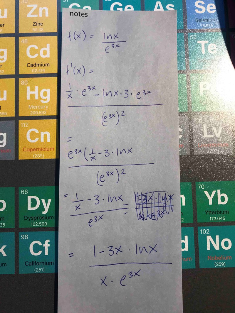 Det jag inte förstår här är vad som händer med x:et i sista steget – varför det hamnar i nämnaren. Det var länge sedan jag gick i grundskolan och just detta verkar jag helt ha förträngt. Ska tillägga att denna lösning kommer från bokens facit, själv stannade jag vid nästa sista steget i min egen uträkning. Så långt är jag alltså med.