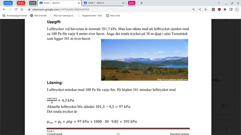 Vattenytan på Torneträsk ligger 341 meter över havsytan, alltså 341 meter över den nivå där lufttrycket (vanligtvis) är 101.3 kPa.