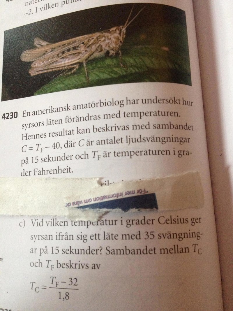 Gör om detta x till Celsius mha uttrycket från uppgiften.