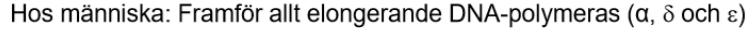 Ja de elongerande DNA polymerasen, kan utifrån en redan skapad DNA-primer, förlänga d.v.s. fortsätta. Dessa enzym syntetiserar merparten av det nya DNA i samband med replikationen, men de kan inte t.ex. skapa RNA-primer och starta DNA-syntesen, eller sköta base excision repair.