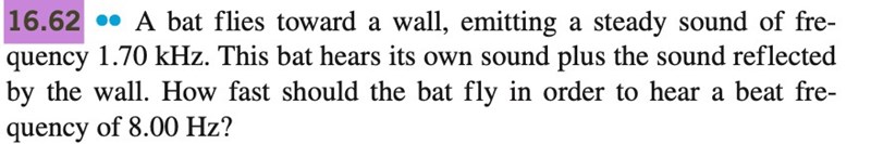 'Beat frequency' är ju skillnaden mellan två frekvenser och vi vet att den reflekterade frekvensen kommer vara större än den infallande, vilket innebär att freflekterade = 1700 + 8 = 1708 Hz.