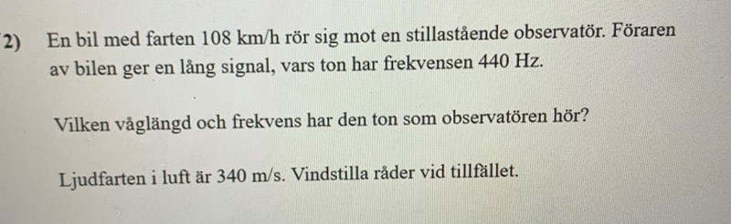jag förstår inte detta då uppgiften säger att bilen åker mot en stillastående observatör.