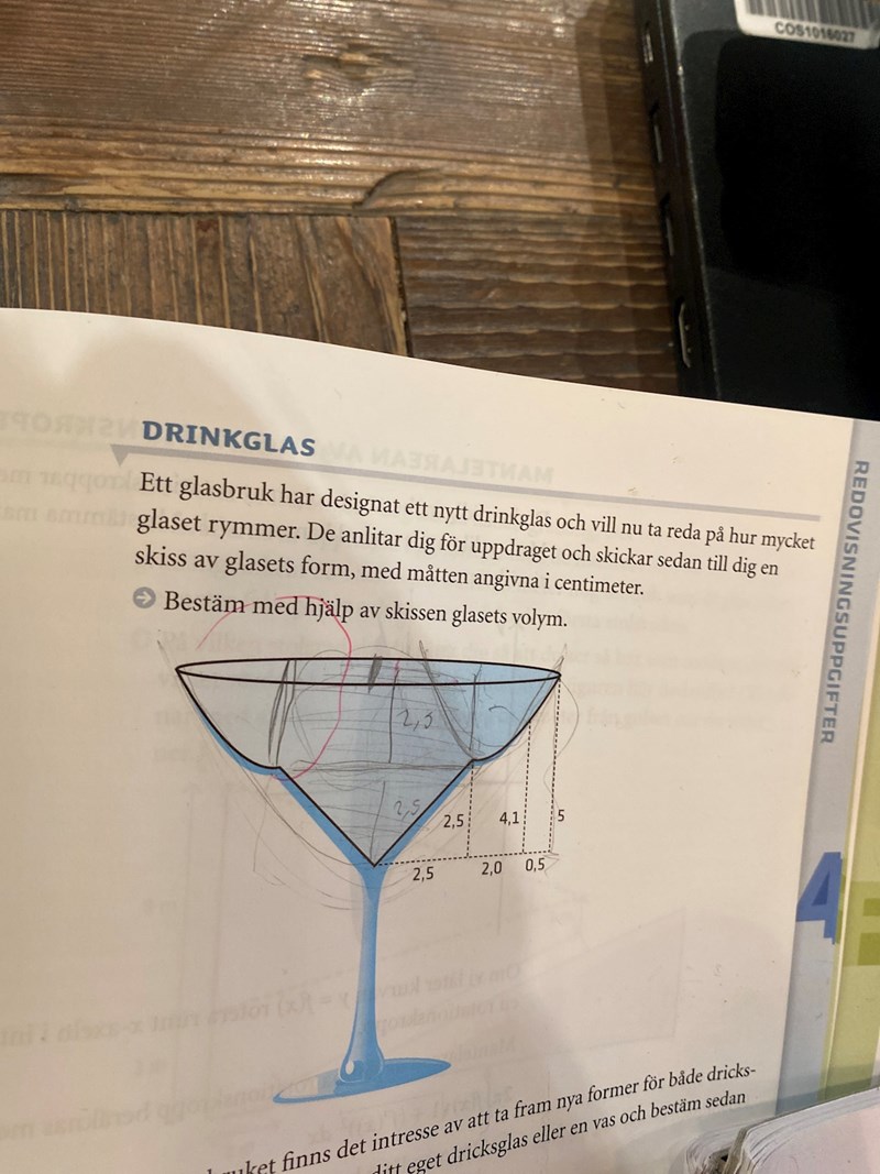 Du har börjat rätt med att hitta en andragradsfunktion för att definiera glasets "väggar" på den övra delen.