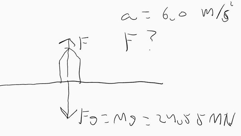 Om en raket har M=2500ton och accelerar direkt efter start med 6m/s², hur räknar man ut drivkraften med den infon?