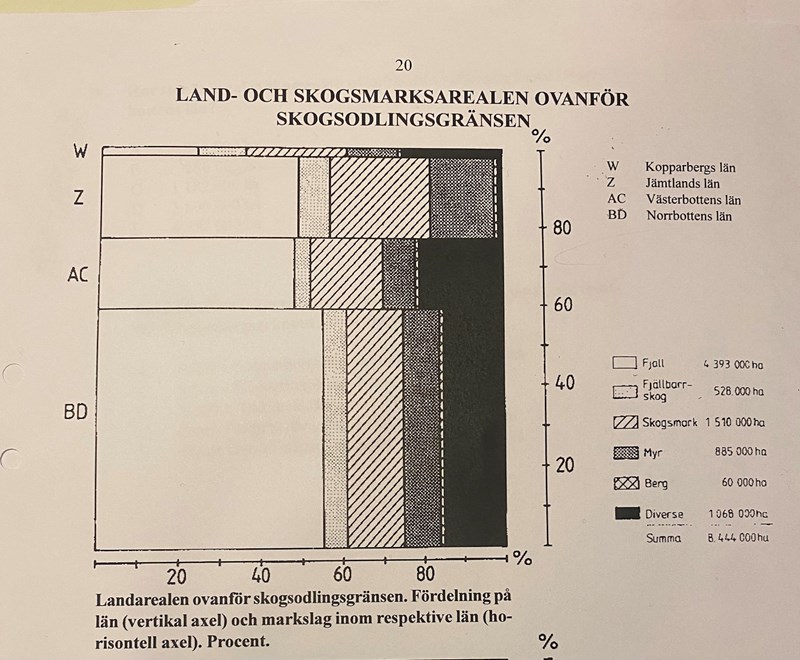 Smaragdalena skrev:"Länets landareal ovanför skogsodlingsgränsen" är 100 % på x-axeln. Det som står på y-axeln behövs inte alls för den här uppgiften (men kanske för andra uppgifter).