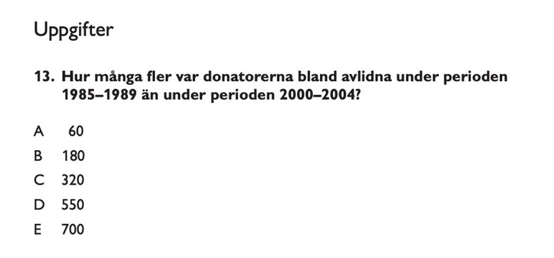 Vet någon den snabbaste metoden för att lösa den här uppgiften än att addera ihop antalet donatorer bland avlidna under respektive period?