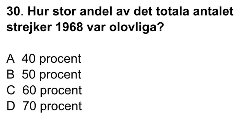Hej! I denna frågan undrar jag verkligen hur jag ska kunna avgöra vad 5/7 (jag får det till denna kvoten) är i procent? Jag gissade på 60% men svaret är 70%. Hur gör ni sådana här bedömningar utan miniräknare, tycker det är svårt att avgöra när svarsalternativen är snarlika varandra.