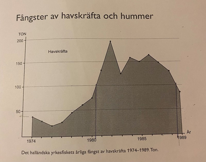 De mäter bara hela årtal så linjen som binder ihop årtalen är inte exakta värden. Det är alltså punkten för 1981 som visar över 100 ton och fram till punkten för 1988. 1989 är en sammanställning efter 1988 som ligger under 100 ton och ska inte vara med.
