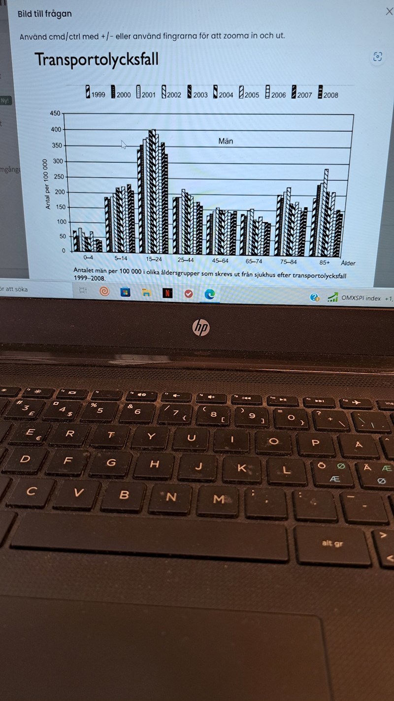 Hur löser man DTK frågor? Jag tittade på diagrammet och finner att det är ungefär 380 antal män per 100 000 vid år 2002.