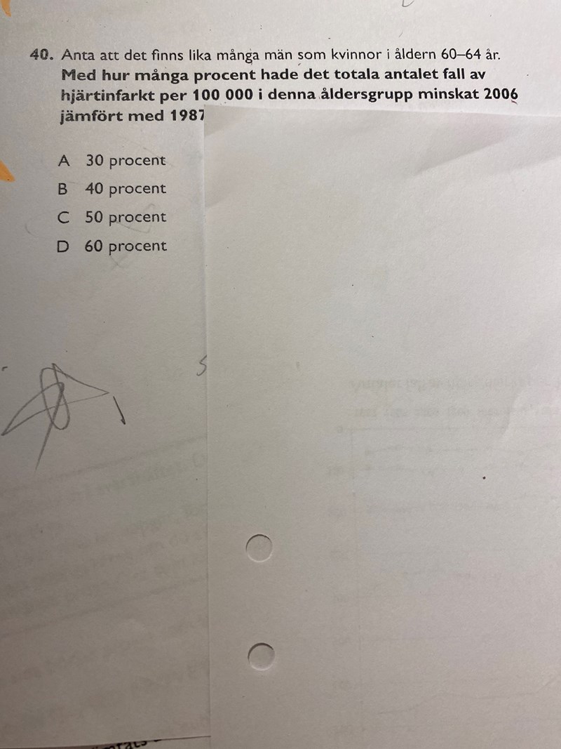 Därefter beräknade jag andelen minskning: (600+150)/(1300+370)=750/1670≈0,45