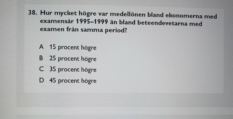10% av 40 967 är ca 4096  och 20% blir ca 8000 sedan adderade det med 33 071 för att se om det kommer upp till 40 967 . 33 071 + 8000= 41 071 vilket är större än 40 967 då trodde jag att svarsalternativ A (15%) är rätt. Men det är fel utan B (25%) är rätt.