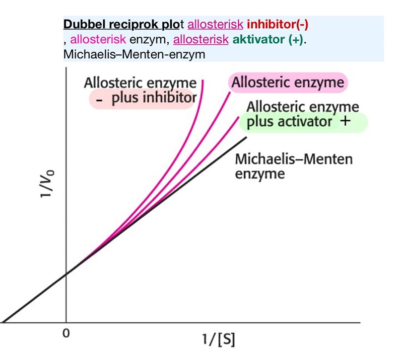 Hej! Jag undrar varför en Dubbel reciprok plot av Michaelis–Menten-enzym, allosterisk enzym, allosterisk inhibitor(-) allosterisk aktivator (+).Med Gemensamt: VMAX & KM får just ordningen