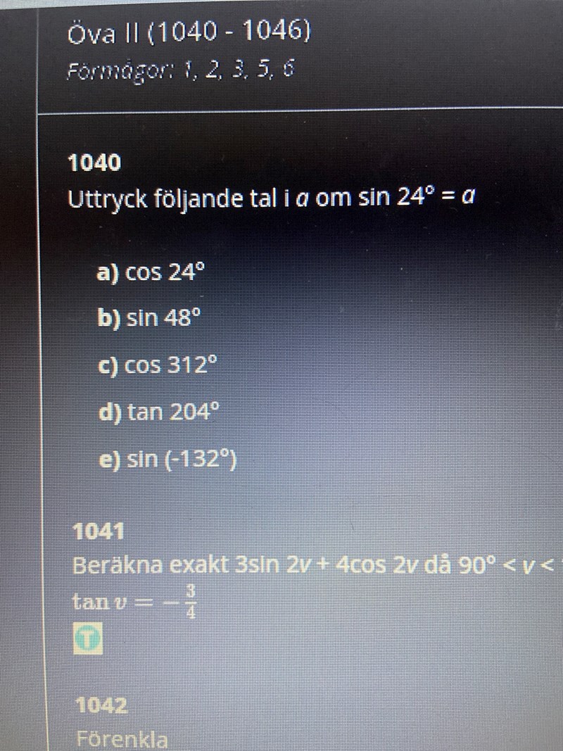 Hej, jag har fastnat totalt på uppgift 1040 c, det enda jag kommit på är 312-360=-48 vilket motsvarar 2a eller -2a