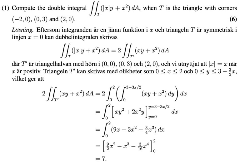 Man delar in den ursprungliga triangeln T i två likadana halvor och kan du räkna integralen på den ena och multiplicera med 2.