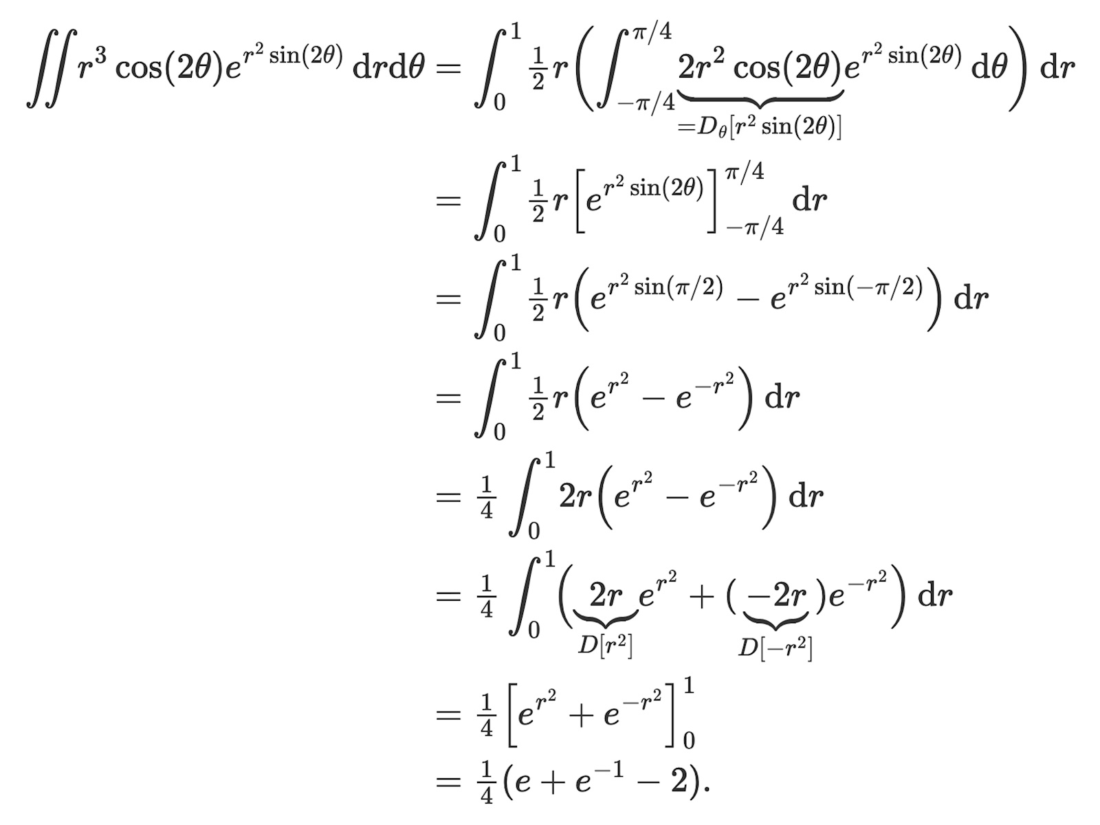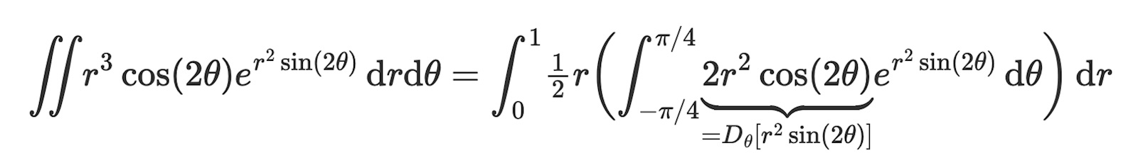 fisher skrev:Ja alltså derivatan av sin(2θ) blir ju 2cos(2θ) så man kan ju göra någon substution men osäker hur man delar upp den med r?