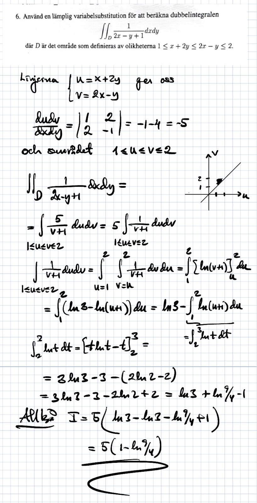 Denna integral är dock en typisk uppgift för tvåvariabelsbyte och