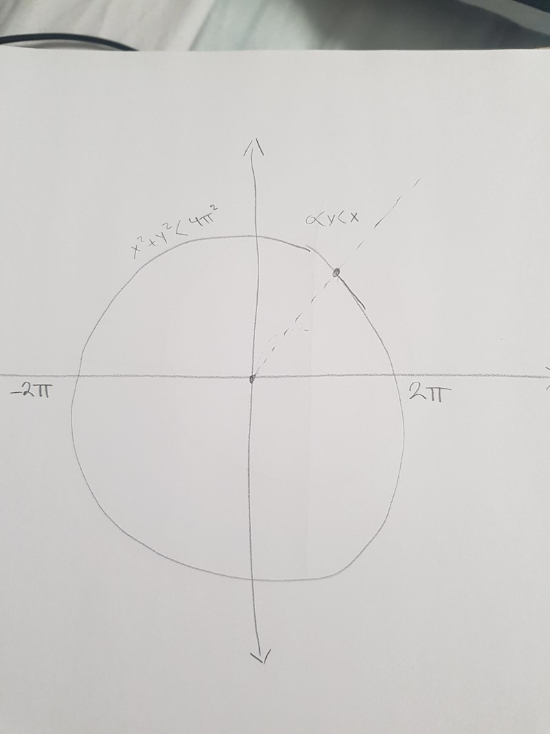 pi<x<2pi men y då jag kan inte bestäma om 0<y<2 eller 0<y<4 eller någonting annat som jag inte ens kan se
