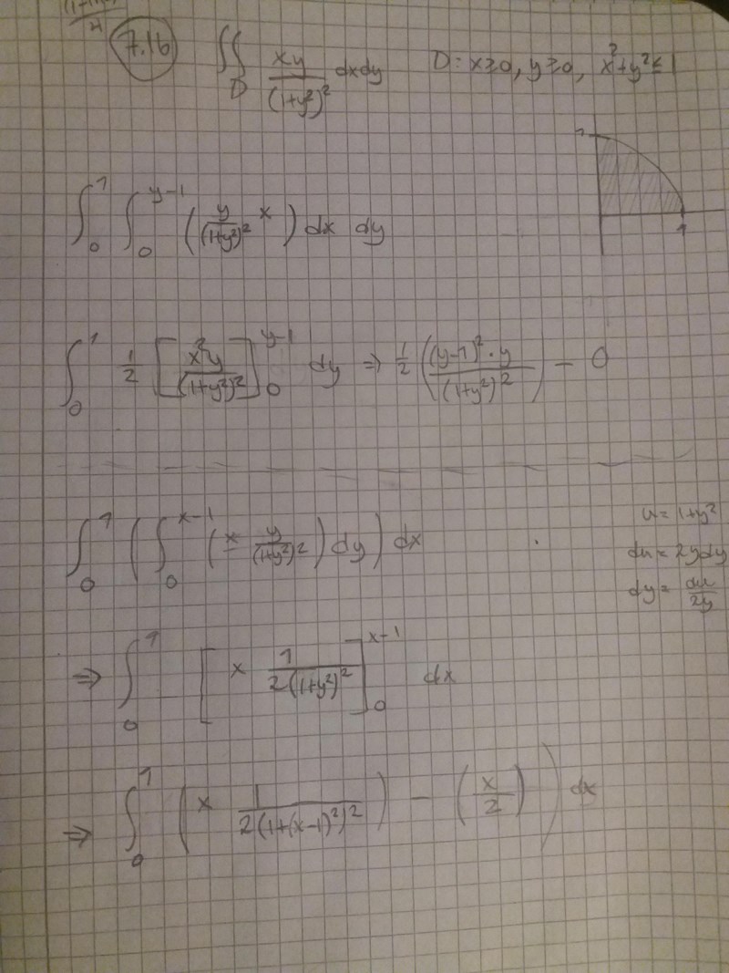 Hej, min kursbok har svaret "(1-ln2)/4". Kan man få detta svaret om man löser problemet med polära koordinater? Undrar alltså om man måste byta till polära? Jag vet inte om min kursbok har gjort det eftersom svaret inte är i polära koordinater?