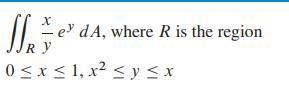 Eftersom termen är ful skulle jag börja med att integrera i x-led och sedan låta y löpa från 0 till 1.