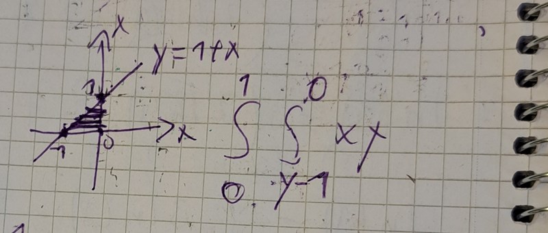 Nu glömde jag att skriva differentialerna så det ska stå då dx först och sen dy. Ber om ursäkt!