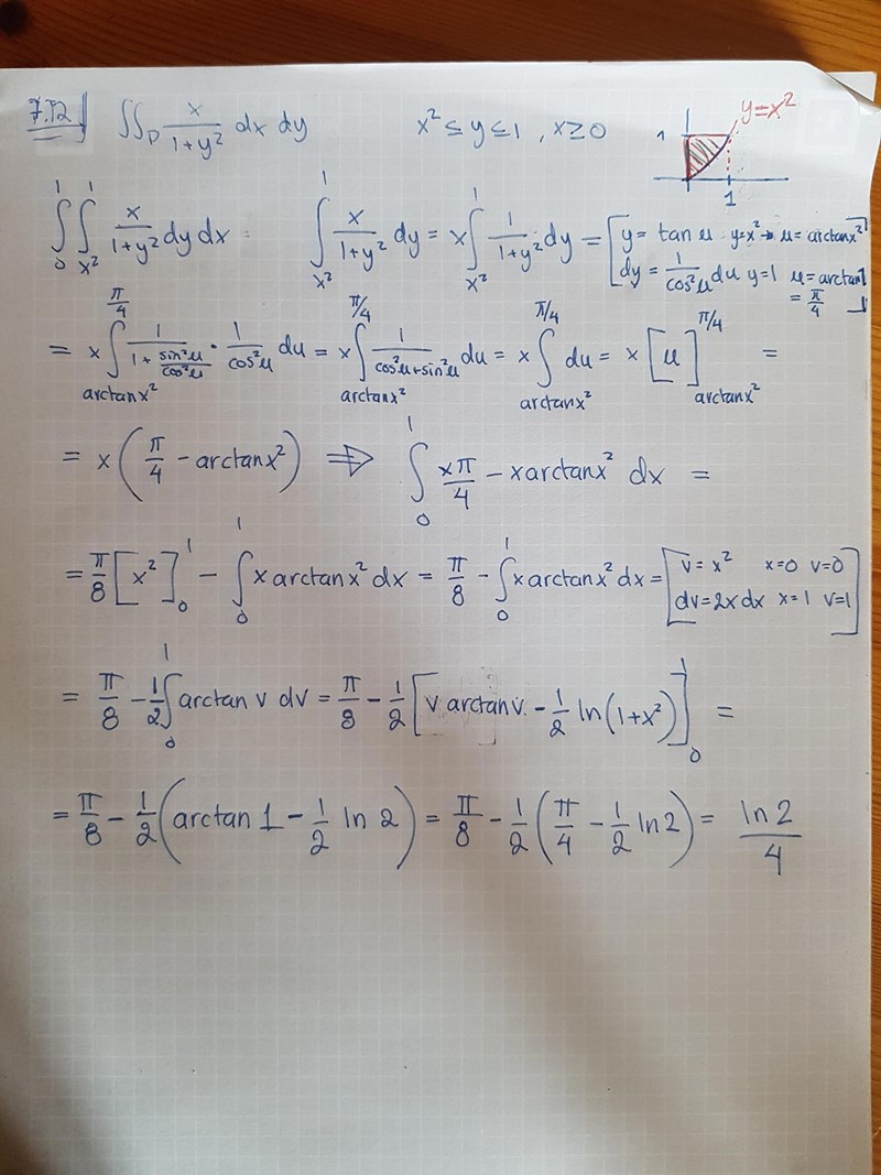 Wow, bra där! Men det var inte det lätta sättet att lösa den integralen :D jag tycker verkligen du ska prova mitt andra förslag också, det borde gå snabbare.