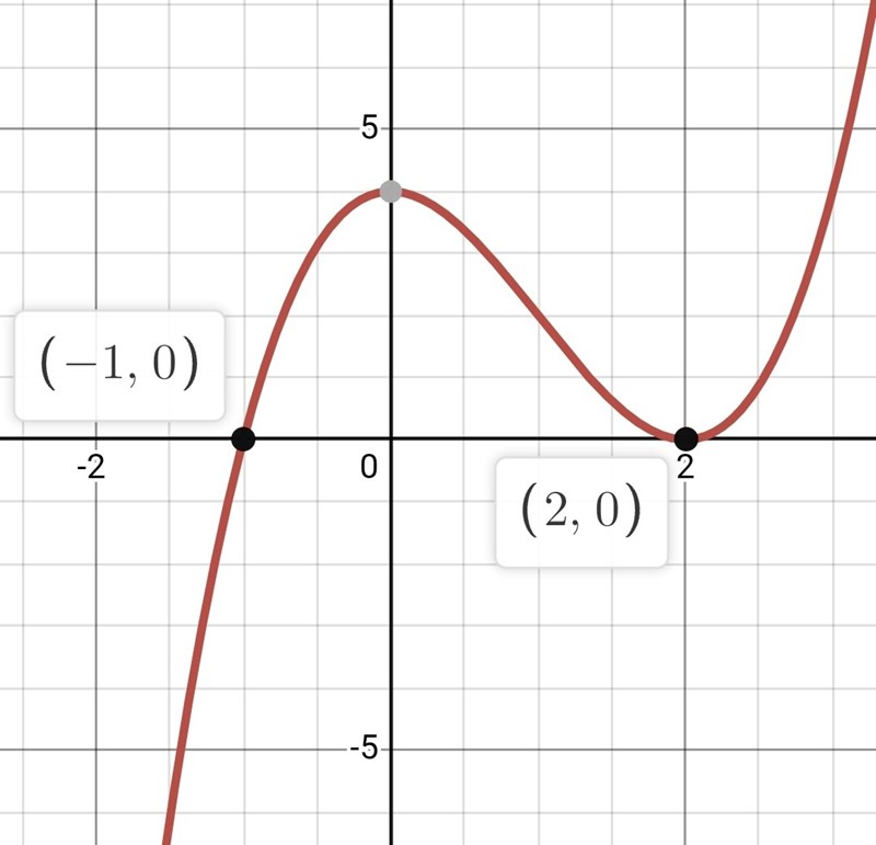 För grafen till y = P(x) innebär det att den har en lokal minimi- eller maximipunkt vid (2, 0).