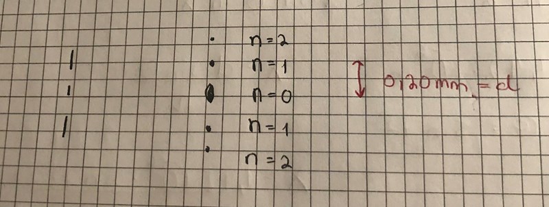 n=2 motsvarar spaltavståndet på 0,20 mm, hur får man hur mycket längre ljuset gått från nedreöppning till övre?