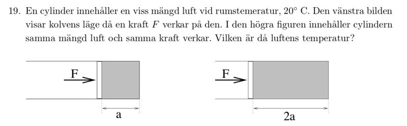 Vad händer med volymen om temperaturen ökar, under förutsättningen att F är konstant?