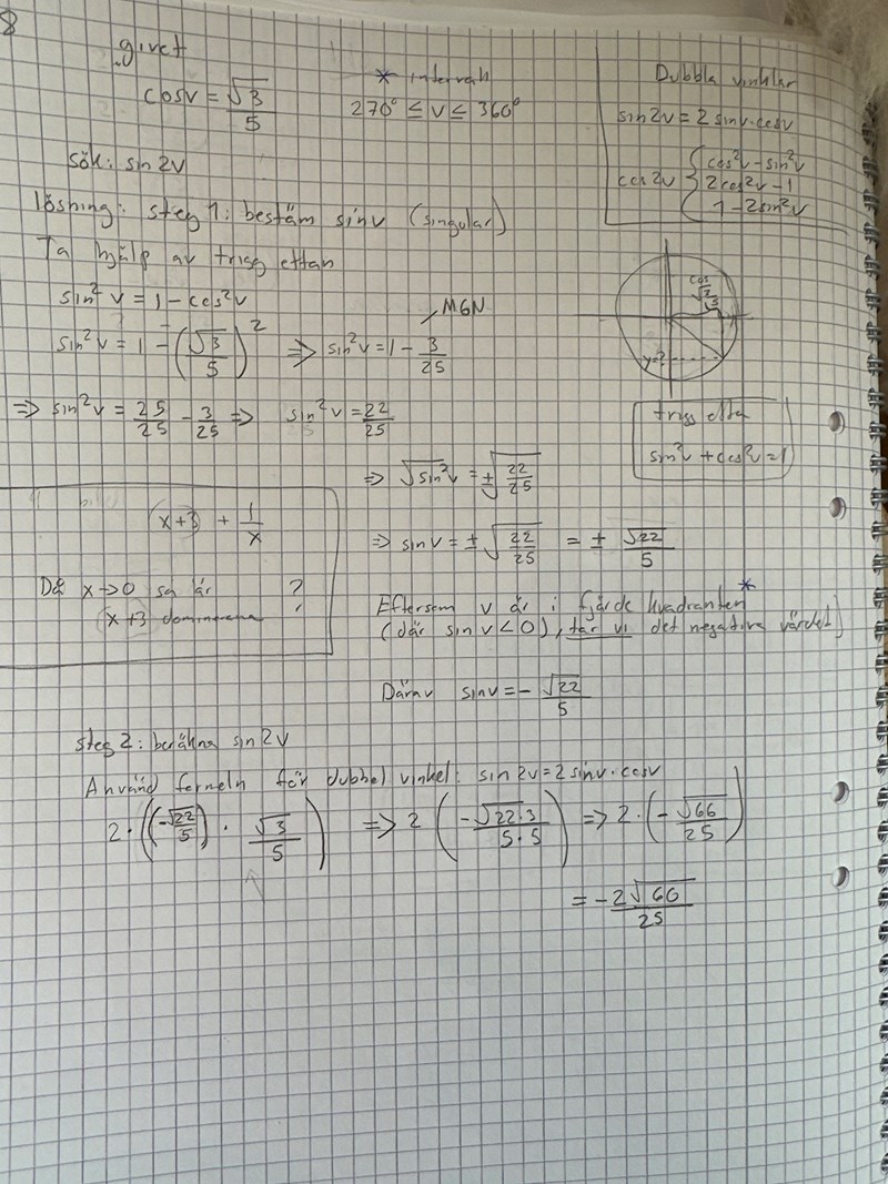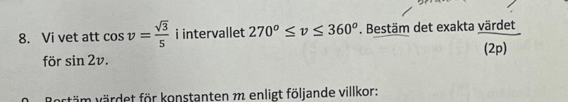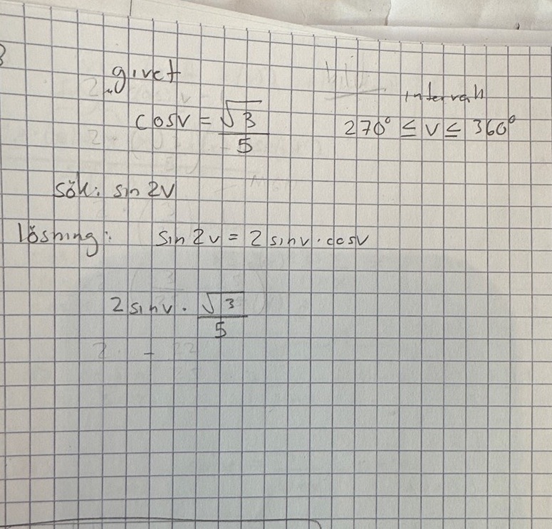 sin 2v = 2 cos v sin v = 2 cos v och sätt in värdet för cos v