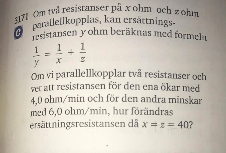 Nej, du behöver inte vara bra på fysik för detta. Uppgiften ger ett samband mellan x, y och z samt anger dx/dt till 4 och dz/dt till -6. Frågan är nu om du kan beräkna dy/dt?