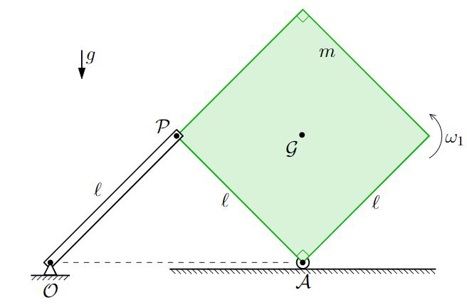 Jag ska beräkna hastigheten i G i denna figuren (där m, l och w1 är kända):