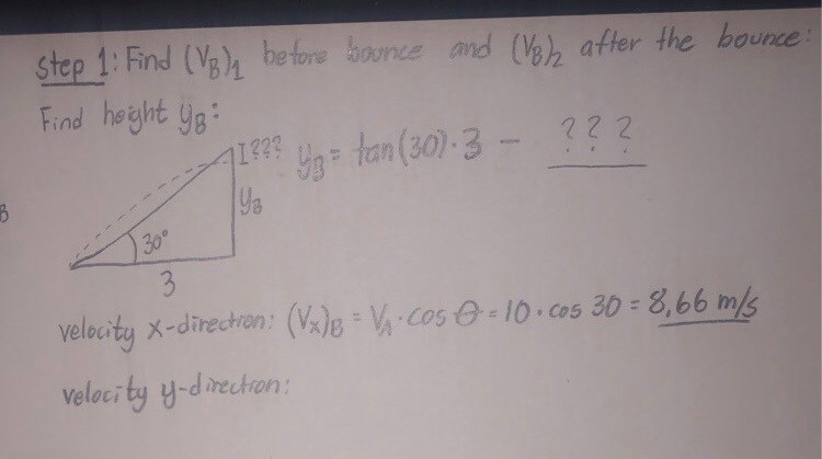 sen ska jag försöka hitta hastigheten i y-led precis innan den studsar, hur kan jag göra det?