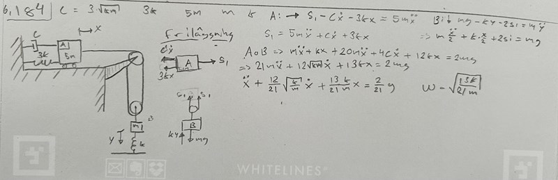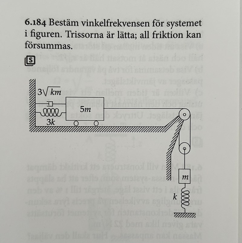 Jag förstår inte varför facit säger roten ur (79k/147m). Jag får istället att omega=sqrt(13k/21m)