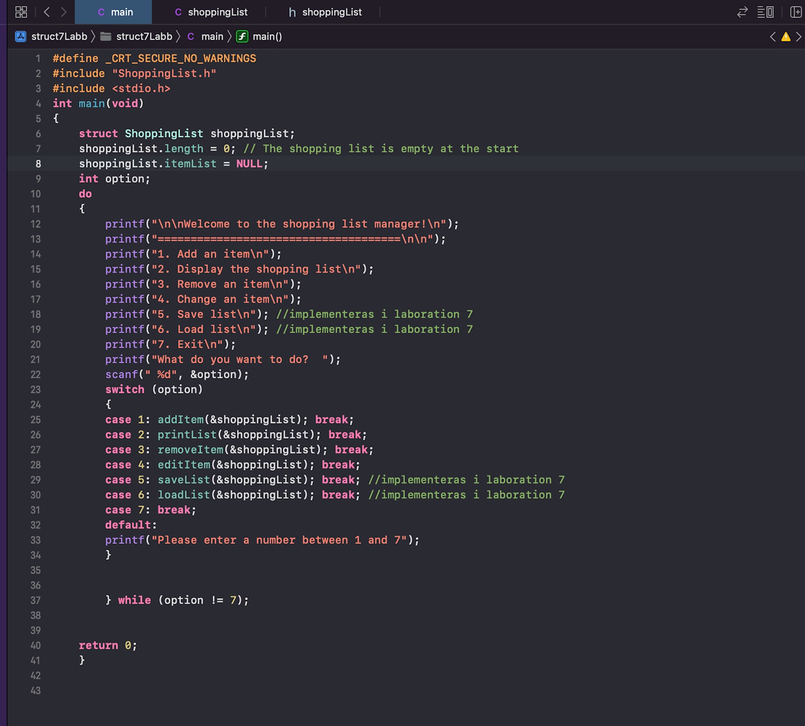 Hej, Jag ska fortsätta med min shoppinglist och nu ska jag dynamisk allokera den istället för att ha en bestämd array av itemlist.
