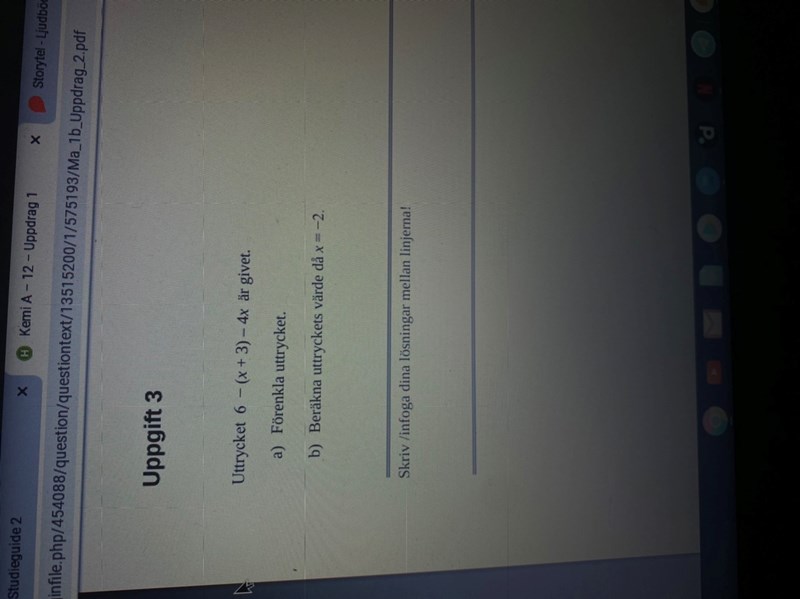 Vi har 6 - (x + 3) - 4x.