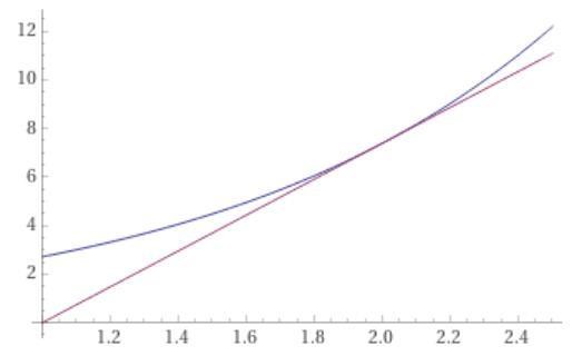 Här har jag t.ex. ritat y=e^x och dess tangent i punkten där x=2: