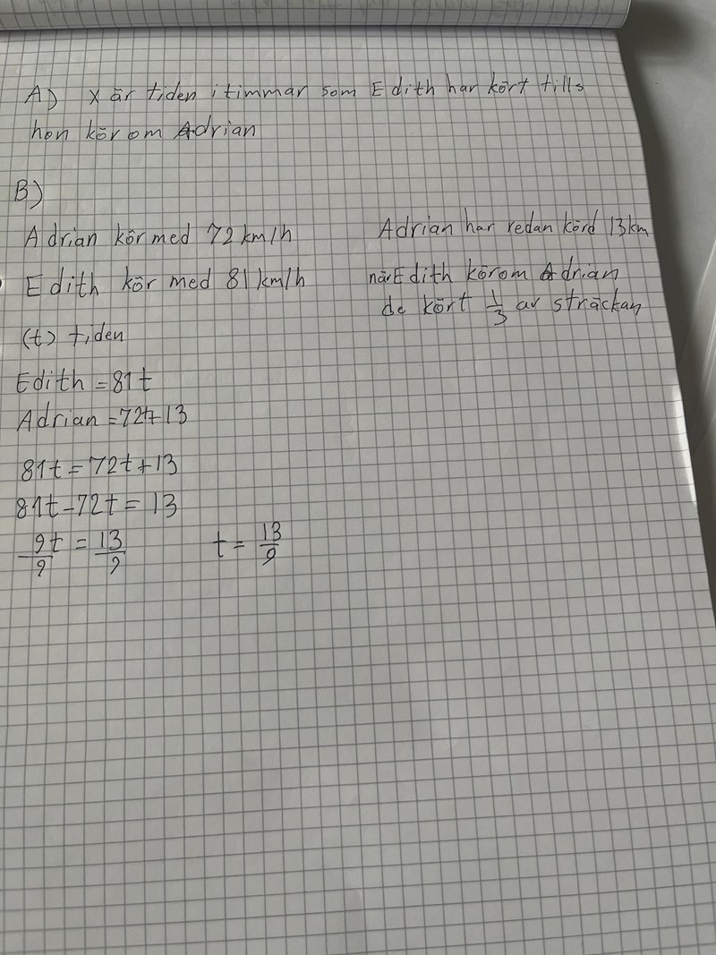Ditt första svar, att x är tiden i timmar tills omkörningar sker, var alltså rätt.