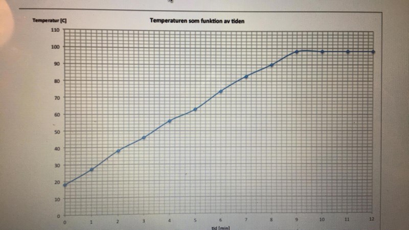Han mätte temperaturen som funktion av tiden och fick följande resultat – se diagram nedan.