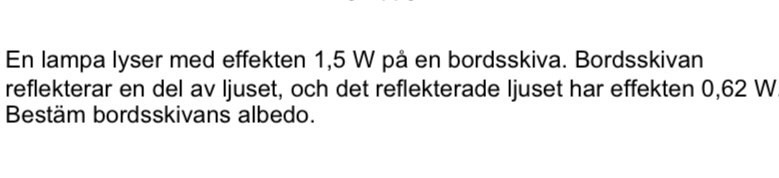 Behöver hjälp med denna fråga, hur är det med albedo och effekt. Effekt uppgifter har jag jobbat med men inte med albedo? Tack för hjälpen!