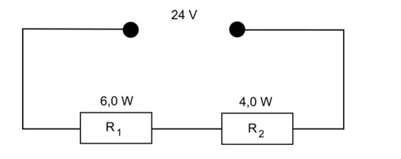 När spänningen över R1 är 24 V utvecklas effekten 6,0 W. När spänningen över R2 är 24 V utvecklas effekten 4,0 W.